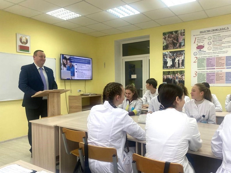 16 октября в рамках Единого дня информирования, посвященного актуальной теме «Роль семейных ценностей в современном обществе», который был приурочен к Неделе родительской любви, в группе 1ЛД23 Могилевского медицинского колледжа состоялась встреча с ректором Могилевского государственного областного института развития образования, кандидатом экономических наук, доцентом Михаилом Михайловичем Жудро.