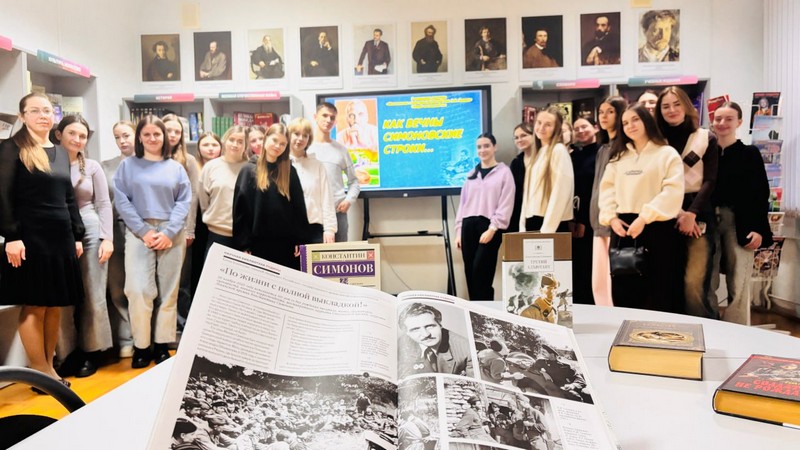 К юбилею писателя для учащихся группы 1Ф24 сотрудники библиотеки медицинского колледжа организовали экскурсию в Могилёвскую областную библиотеку им. В.И. Ленина. В общем читальном зале для учащихся сотрудники областной библиотеки провели литературный час «Как вечны симоновские строки…».