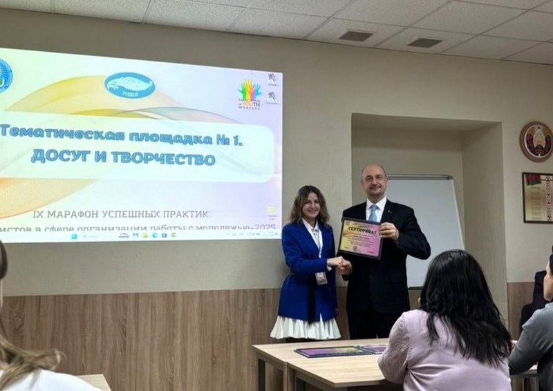 27 ноября в государственном учреждении образования «Республиканский институт высшей школы» прошел IX презентационный проект «Марафон успешных практик специалистов в сфере организации работы с молодежью», в котором приняли участие начальник отдела по воспитательной работе с молодежью Никитенко О.А., автор практики «Молодежный форум-фестиваль «PROдвижение» и культорганизатор Власова И.П., автор практики «Флешмоб «Мы вместе».