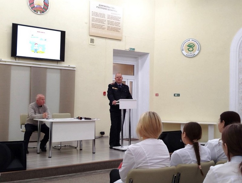 27 ноября в рамках реализации информационно-образовательного проекта «Школа Активного Гражданина» в Могилевском медицинском колледже состоялась встреча учащихся групп 1ЛД25, 2ЛД25, 6СД25/а, 1МДД25 с начальником инспекции по делам несовершеннолетних Ленинского РУВД г. Могилева Козловым Анатолием Сергеевичем и представителем Белорусского добровольного пожарного общества Радионовой Еленой Валерьевной.