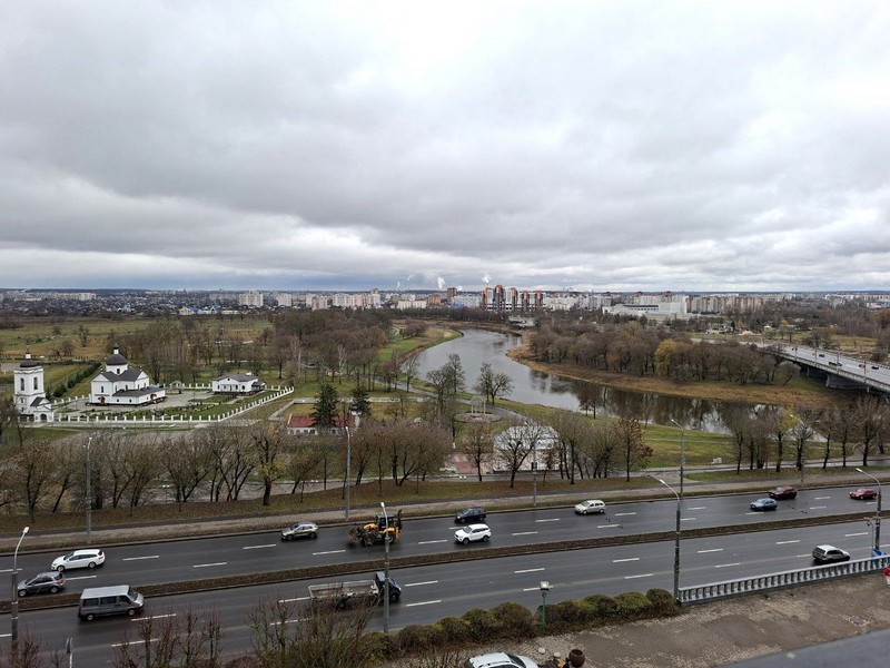 Поднялись по крутой лестнице на смотровую площадку, с которой открывается прекрасная панорама на город Могилев и пойму реки Днепр. На самом верху башни установлены уникальные часы и механическая фигура городского трубача. Имя трубача Могислав («тот, кто славит Могилев»), и он каждый день в полдень исполняет с балкона Ратуши городскую фанфару.
