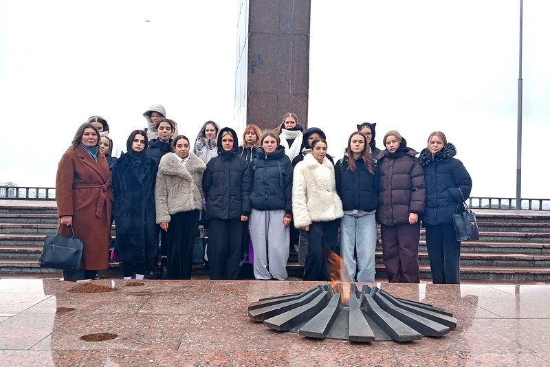 Туманный ноябрьский день окутал Могилёв серой дымкой, словно природа сама решила приглушить краски в знак скорби. Сквозь пелену едва проступали очертания монумента на высоком берегу Днепра — мемориального комплекса на площади Славы. Именно сюда направилась группа учащихся медицинского колледжа 3СД25, чтобы на мгновение выйти из круговорота будней и прикоснуться к вечности.