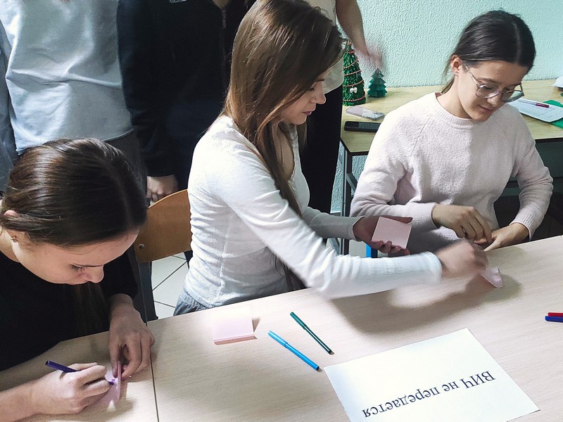 Учащиеся сыграли в игру «Степной огонь». В ходе нее есть возможность наглядно и подробно представить участникам особенности одного из кризисных моментов для человека, живущего в обществе, где распространяется ВИЧ-инфекция. Масштабность и непредсказуемость инфицирования. Понимание состояния человека принимающего решение о прохождении тестирования на ВИЧ, ожидающего результат и получающего положительный/отрицательный результат.