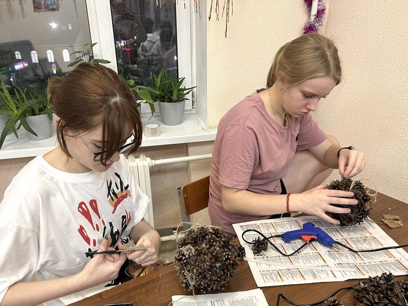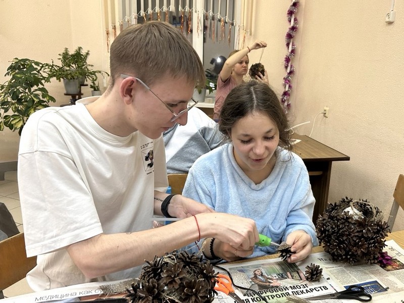В преддверии самого волшебного праздника в общежитии № 1 Могилёвского медицинского колледжа царит атмосфера творчества и уюта. В объединении по интересам «Рукотворушка» происходит маленькое чудо: обычные сосновые шишки в руках ребят превращаются в очаровательные новогодние украшения.