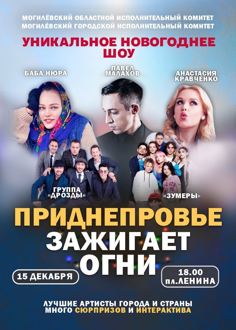 Новогоднее патриотическое шоу на площади Ленина в г. Могилеве станет стартом череды праздничных мероприятий в Могилевской области и подарит всем праздничное настроение и атмосферу настоящего волшебства.