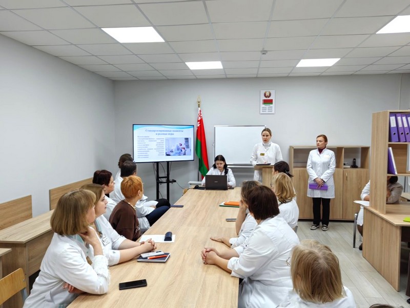 Лаборант Шляхтова Ирина Викторовна акцентировала внимание присутствующих на ключевых аспектах работы лаборанта в лаборатории по отработке навыков.