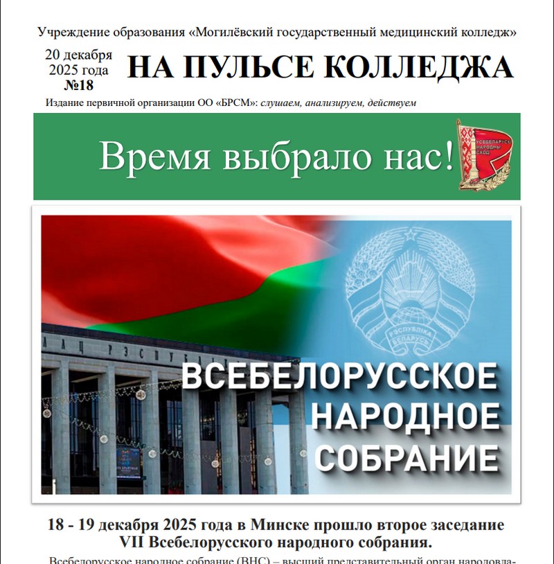 Друзья! О самых главных и интересных событиях из жизни нашего колледжа читайте в предновогоднем выпуске студенческой газеты «На пульсе колледжа»! Читайте, вдохновляйтесь, будьте в курсе!
