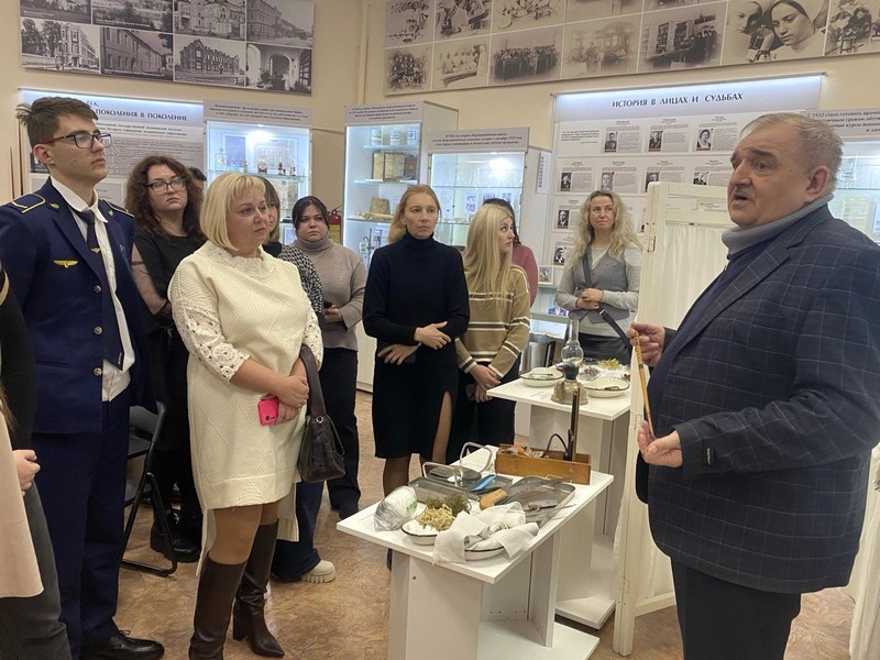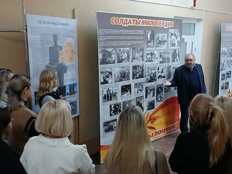 Встреча началась в музейной комнате колледжа, где особое внимание выступающие уделили вкладу медицинских работников в годы Великой Отечественной войны. Самоотверженность и героизм медработников стали настоящим символом мужества и гуманности.