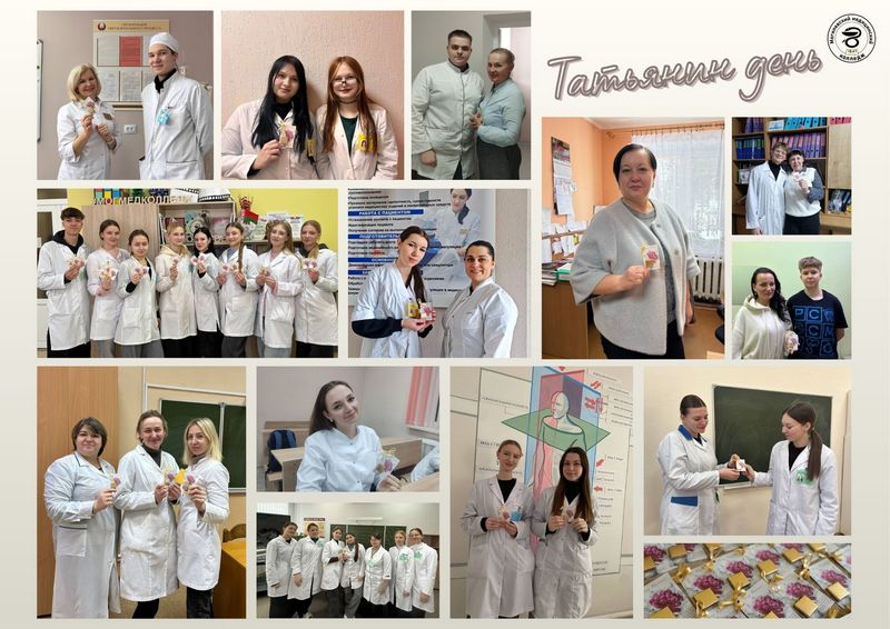 По инициативе ученического совета медицинского колледжа в канун Татьяниного дня прошла праздничная акция «Нашим Татьянам посвящается». Активисты поздравили всех Татьян – учащихся и сотрудниц колледжа – с их именинами. Каждая обладательница этого имени получила персональную поздравительную открытку и сладкий подарок. Эта тёплая инициатива помогла создать в колледже по-настоящему праздничную атмосферу. Акция стала доброй традицией, подчеркивающей единство и уважение среди учащихся и сотрудников.