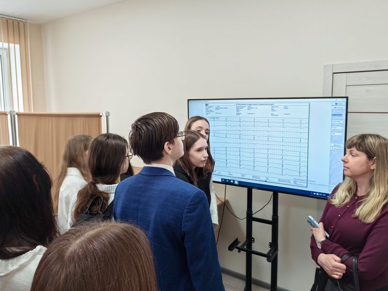 тренажера для отработки навыков сердечно-легочной реанимации, показали работу 12-канального цифрового компьютерного электрокардиографа «Интекард-3» для регистрации и расшифровки электрокардиограмм.