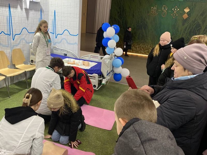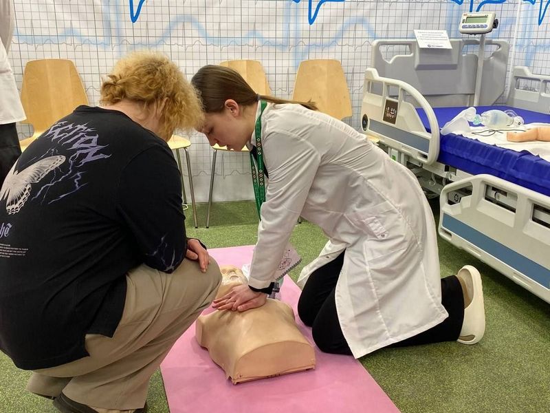 Будущие медики не только демонстрировали теоретические знания, но и на практике обучали посетителей выставки жизненно важным навыкам: технике проведения сердечно-легочной реанимации (СЛР) и выполнению приема Геймлиха при попадании инородного тела в дыхательные пути.