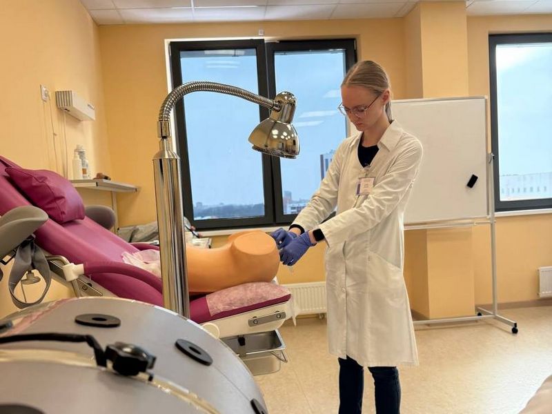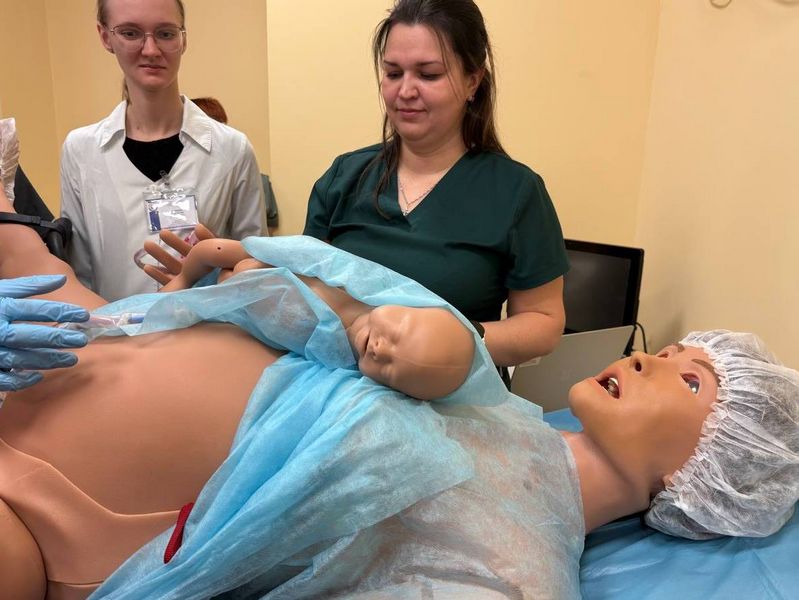 Используя современное симуляционное оборудование, учащиеся колледжа и студенты медицинского университета отработали навыки по родоразрешению и провели оценку состояния новорожденного в первые минуты жизни с оценкой по шкале Апгар.