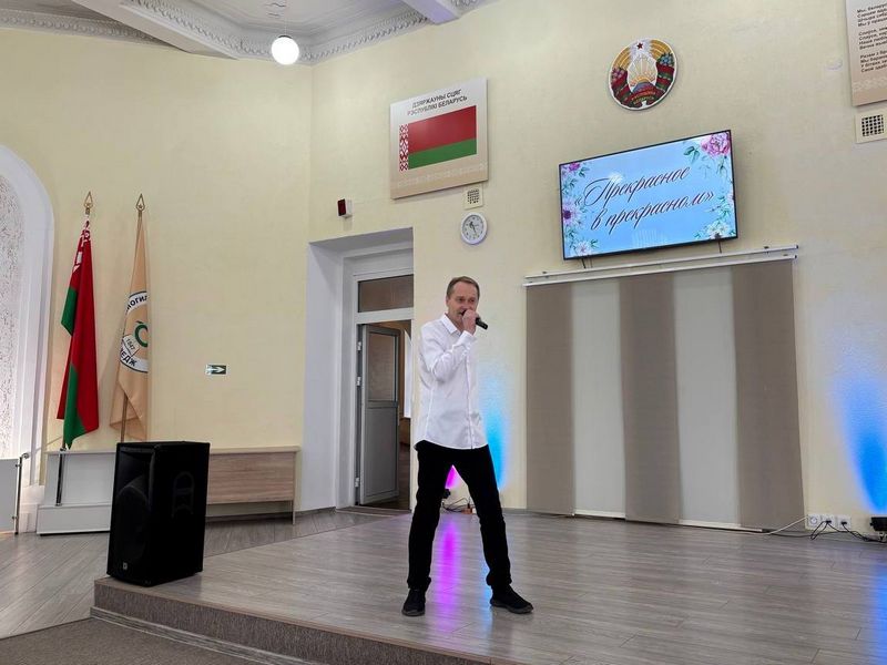 К поздравлениям присоединился приглашенный гость – сотрудник департамента охраны Виктор Козлов, который подарил творческий подарок зрителям.