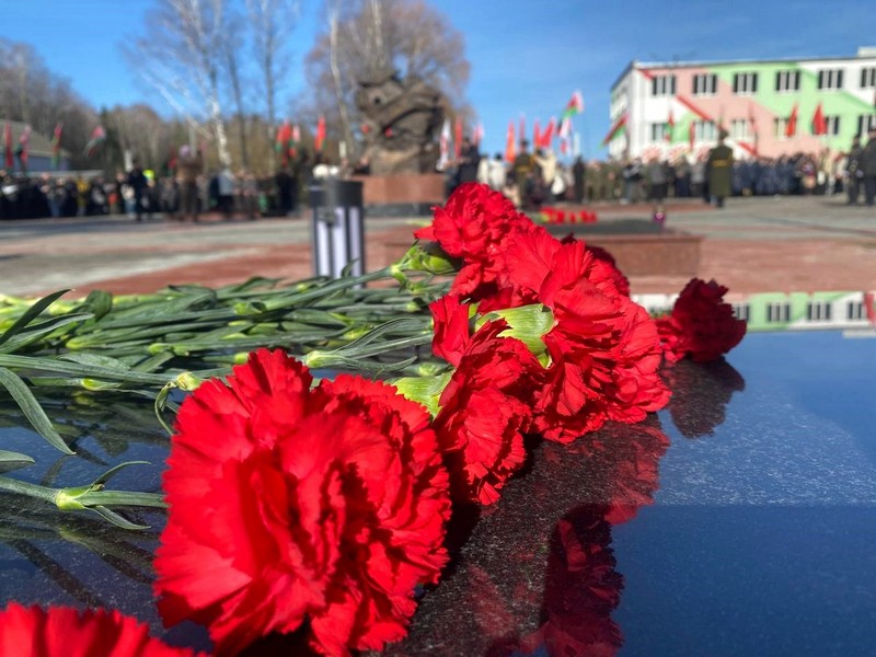 У памятного знака жертвам геноцида белорусского народа в годы Великой Отечественной войны состоялась церемония возложения цветов. Память погибших почтили минутой молчания.