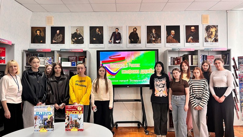Учащиеся познакомились с книжной выставкой «Беларусь и Россия: историческая и духовная общность», посмотрели образовательные ролики и посоревновались в интерактивной игре и викторине на знание географии, истории, культуры, традиций и литературы Беларуси и России.