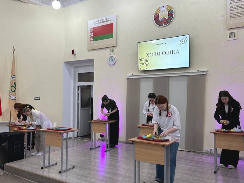 В конкурсе «Хозяюшка» девушкам предстояло продемонстрировать навык быстрой и аккуратной очистки картофеля. Жюри оценивало не только скорость, но и качество выполненной работы.
