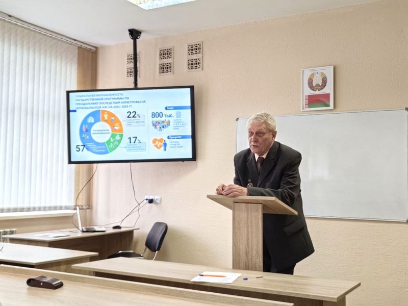Перед участниками мероприятия выступили Костусева С.Н, заместитель директора по воспитательной работе, и Заремский В.К., историк, педагог дополнительного образования, которые рассказали, как за четыре десятилетия Беларусь шаг за шагом восстановила жизнь на пострадавших территориях.